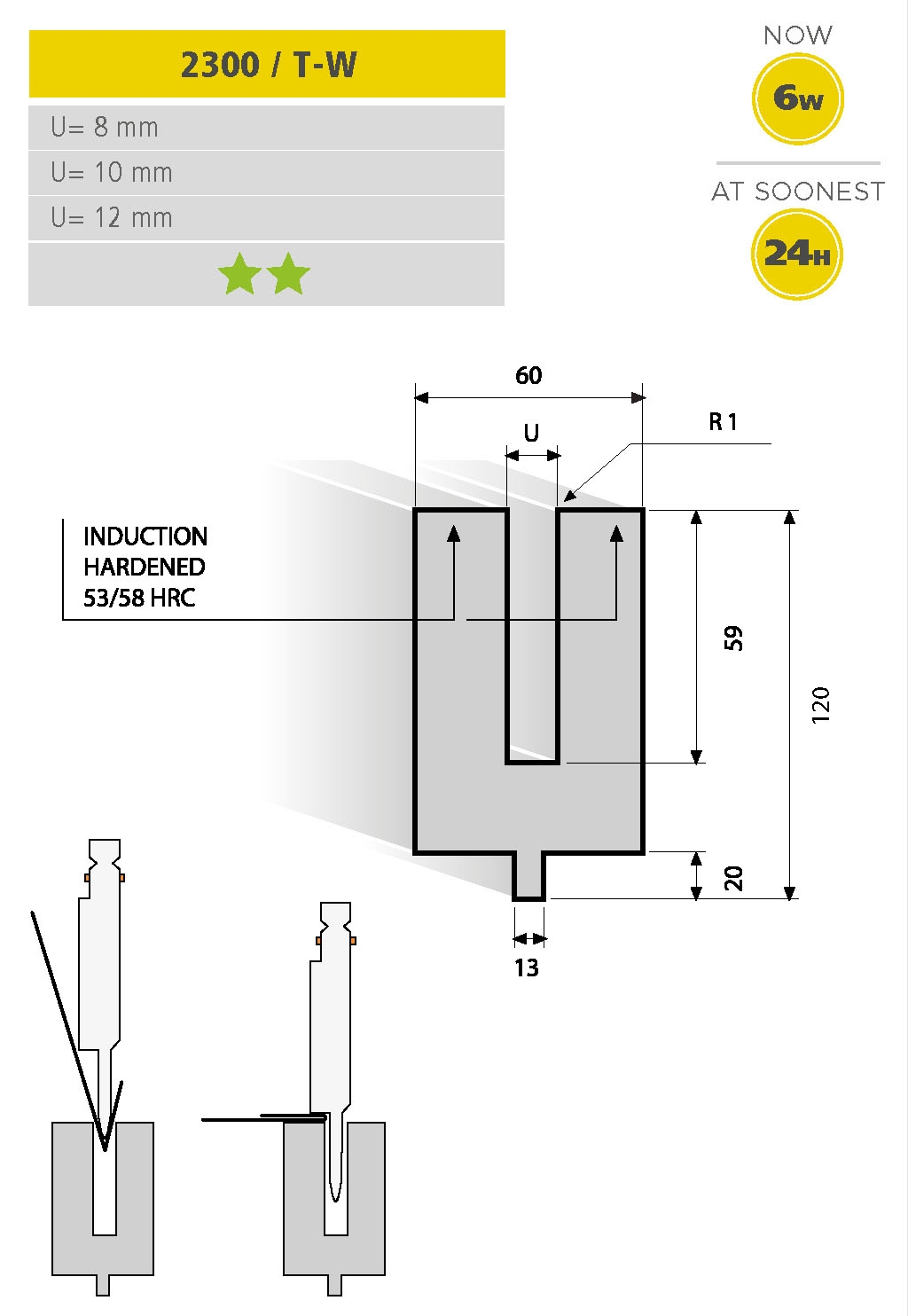 Utensili per presse piegatrici realizzati con standard di qualità superiore, temprati a induzione sulle parti di lavoro e totalmente rettificati. Lunghezza Standard: 515mm; 550 frazionati; 100mm+100mm; 255mm