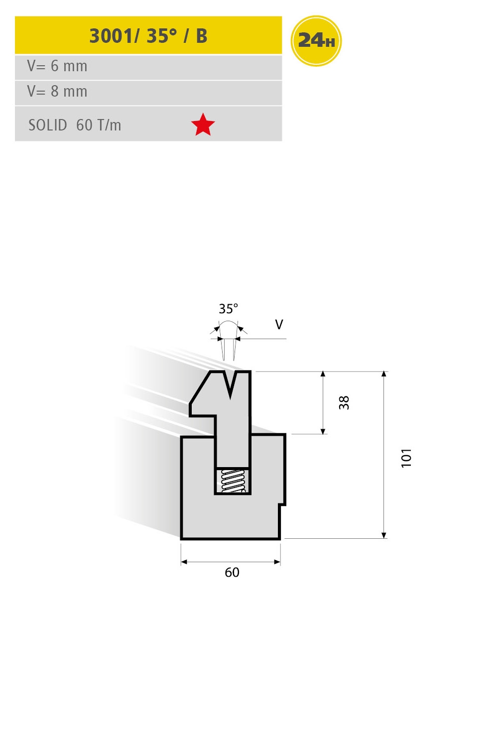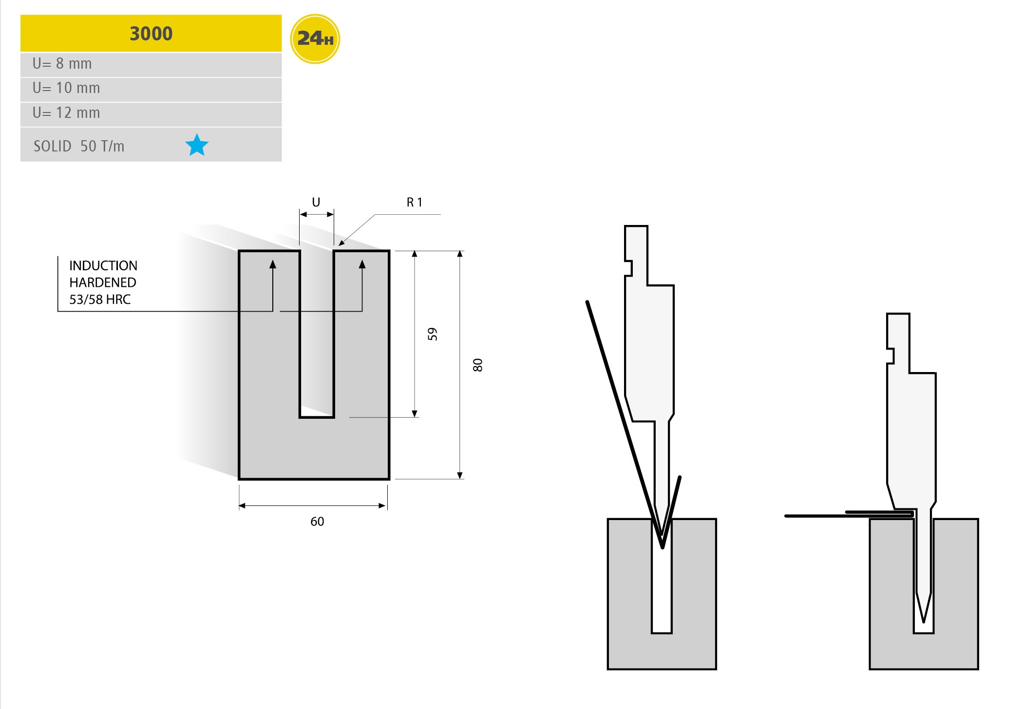 Utensili per presse piegatrici realizzati con standard di qualità superiore, temprati a induzione sulle parti di lavoro e totalmente rettificati. Lunghezza Standard: 835mm; 415mm; 805/835 frazionati