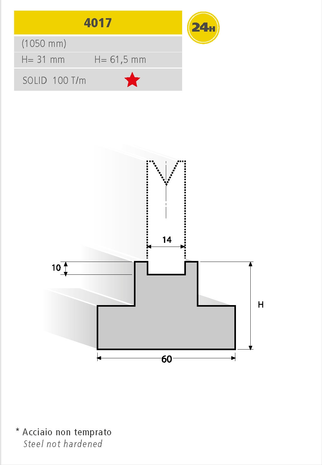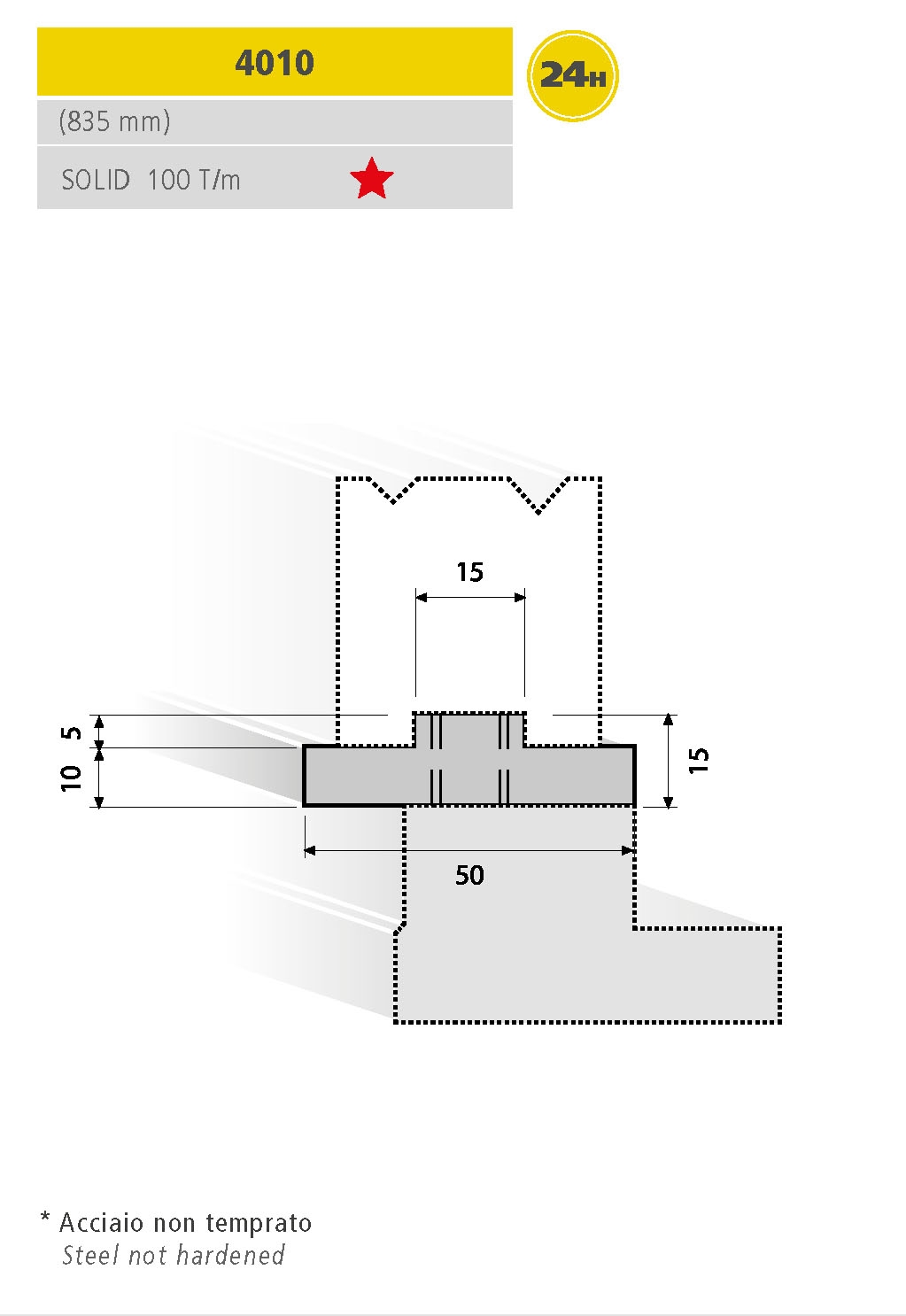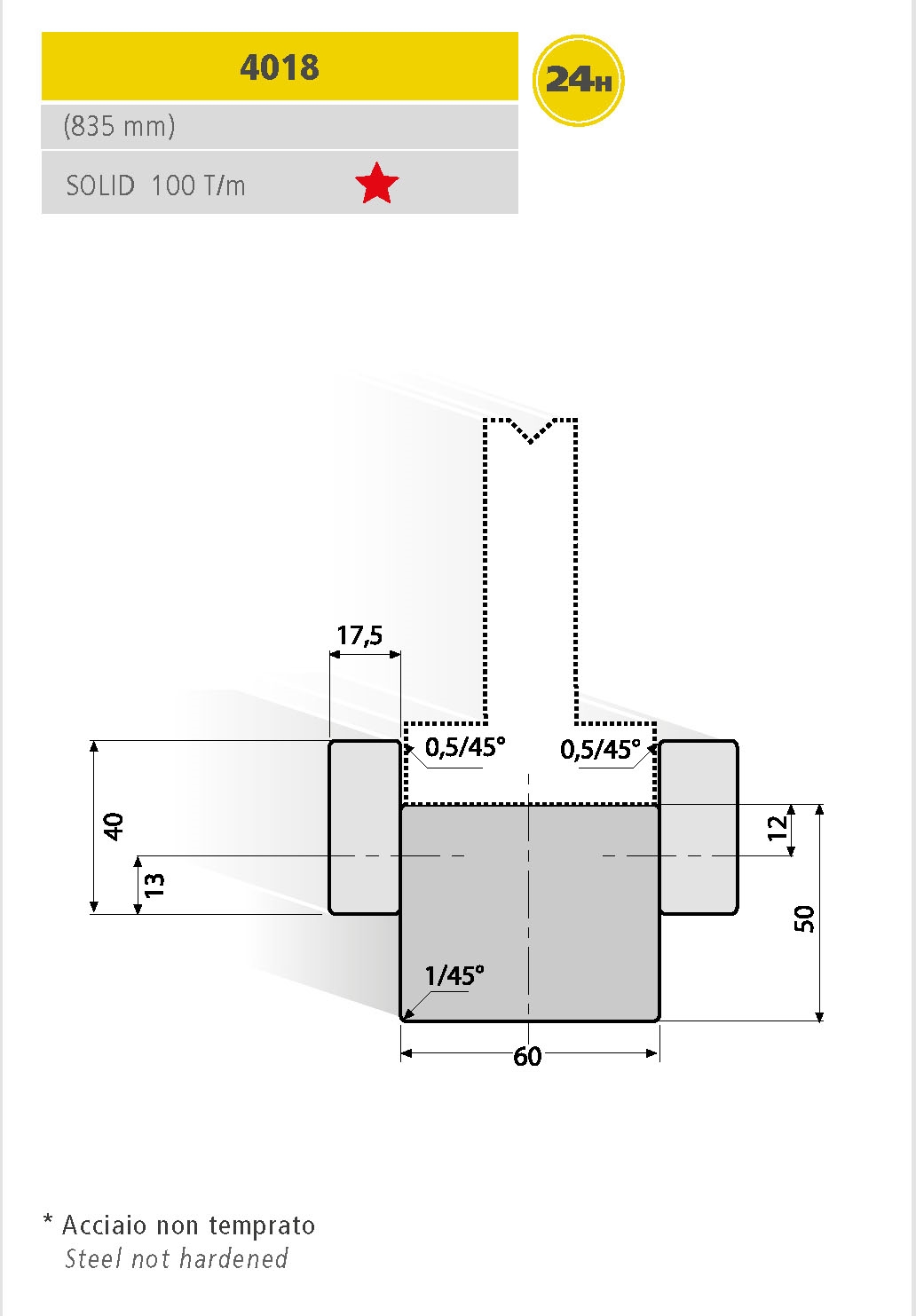 Utensili per presse piegatrici realizzati con standard di qualità superiore, totalmente rettificati. Lunghezza Standard.
