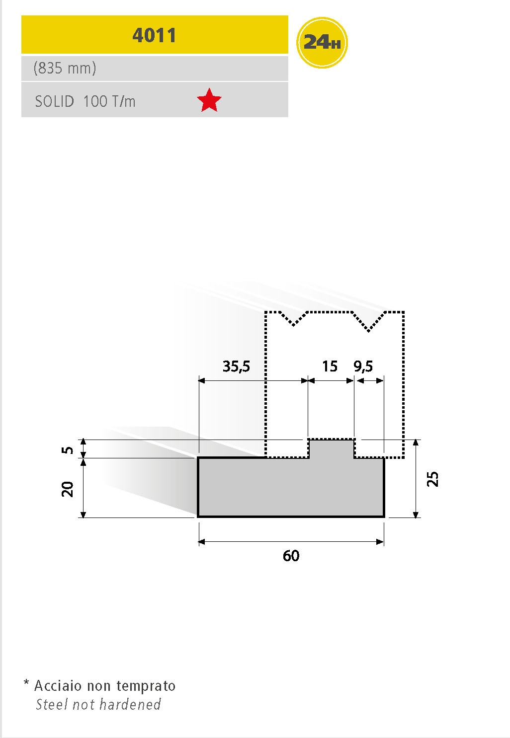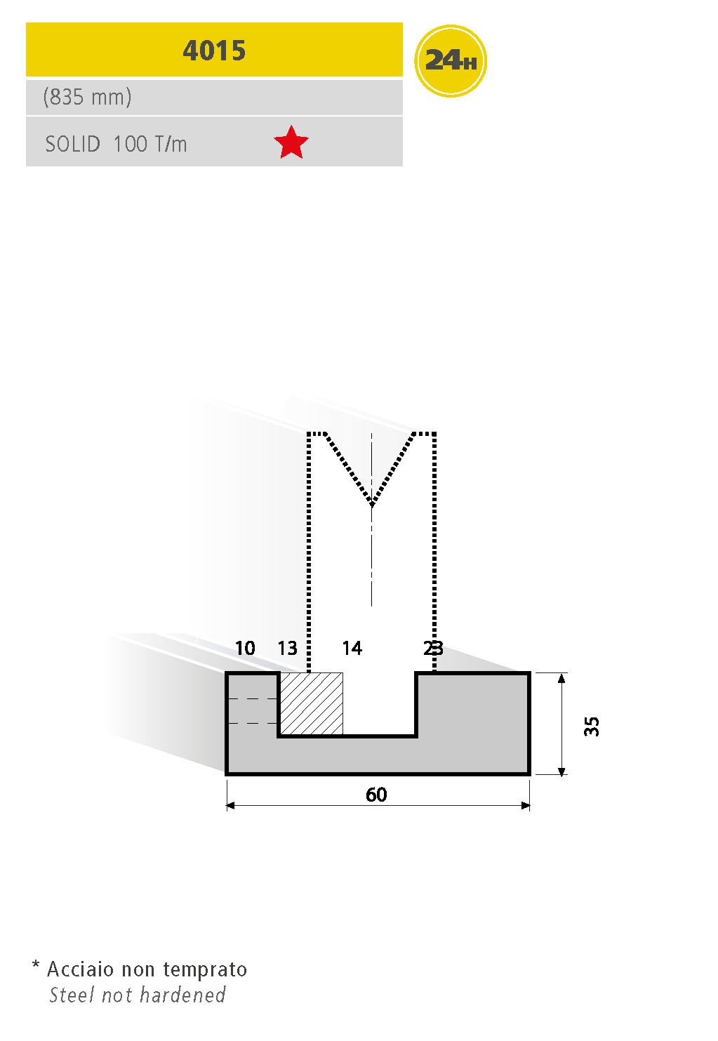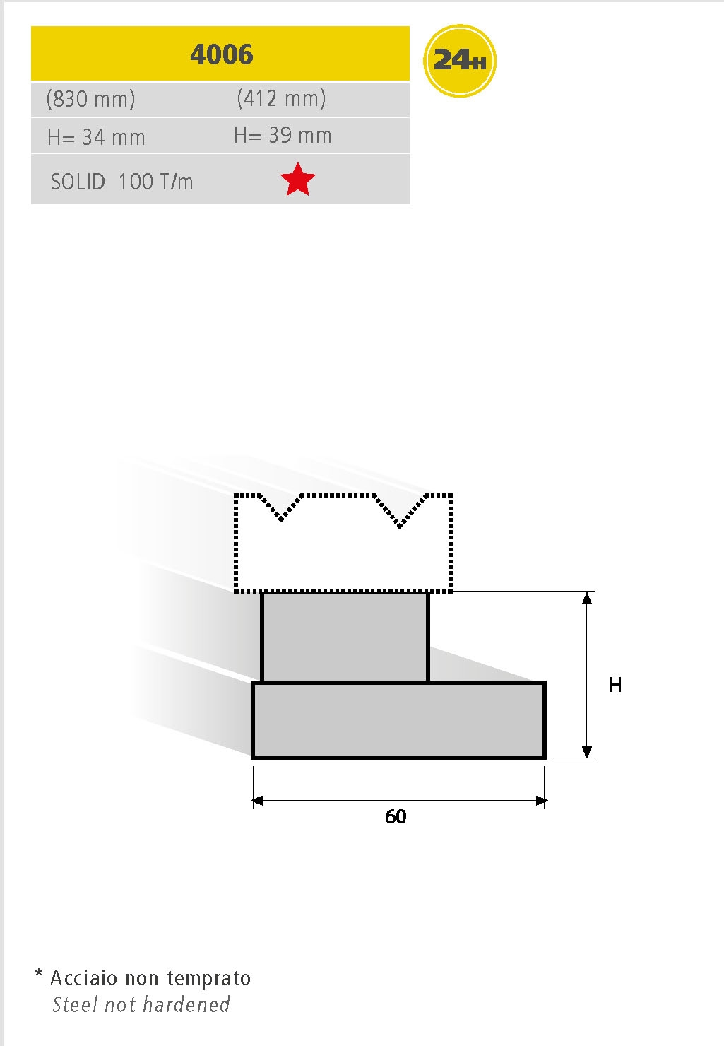 Utensili per presse piegatrici realizzati con standard di qualità superiore, totalmente rettificati. Lunghezza Standard.